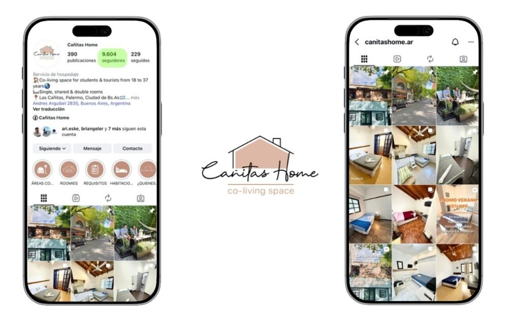 Cañitas Home necesitaba una identidad de marca que resonara con jóvenes profesionales y estudiantes, promoviendo un sentido de comunidad y sociabilidad en un entorno de co-living space. Nuestro enfoque se centró en desarrollar un branding que reflejara estos valores, incluyendo el diseño de un logo, una identidad visual cohesiva y la creación de contenido que destacara la vida en el co-living.