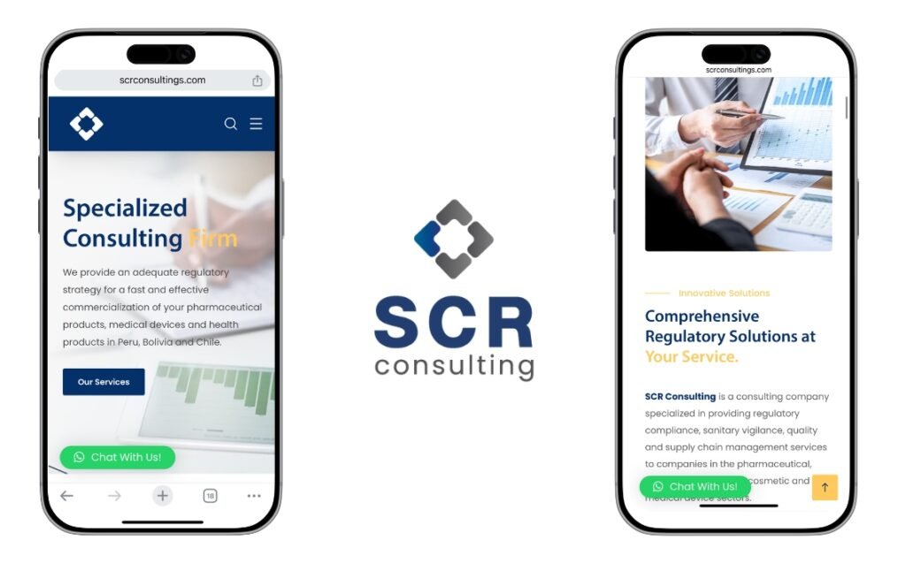 SCR Consulting, una destacada empresa peruana especializada en consultoría, se enfoca en ofrecer servicios de cumplimiento regulatorio, vigilancia sanitaria y gestión de calidad y cadena de suministro para los sectores farmacéutico, biotecnológico, nutracéutico, cosmético y de dispositivos médicos. Con su reciente expansión hacia nuevos mercados en Latinoamérica, la empresa necesitaba un rebranding estratégico que reflejara este crecimiento, pasando de «SCR Consultores» a «SCR Consulting» para comunicar su enfoque global.